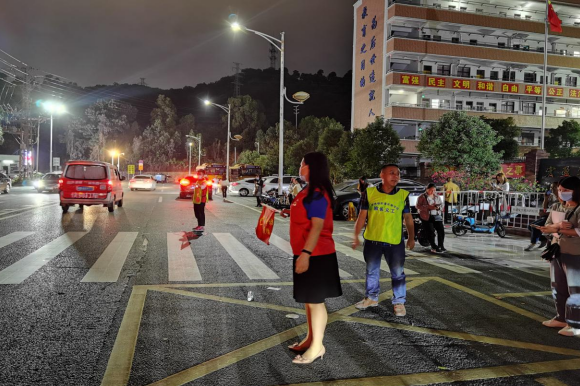 德扑之星党团志愿者分队队员现场维护交通秩序